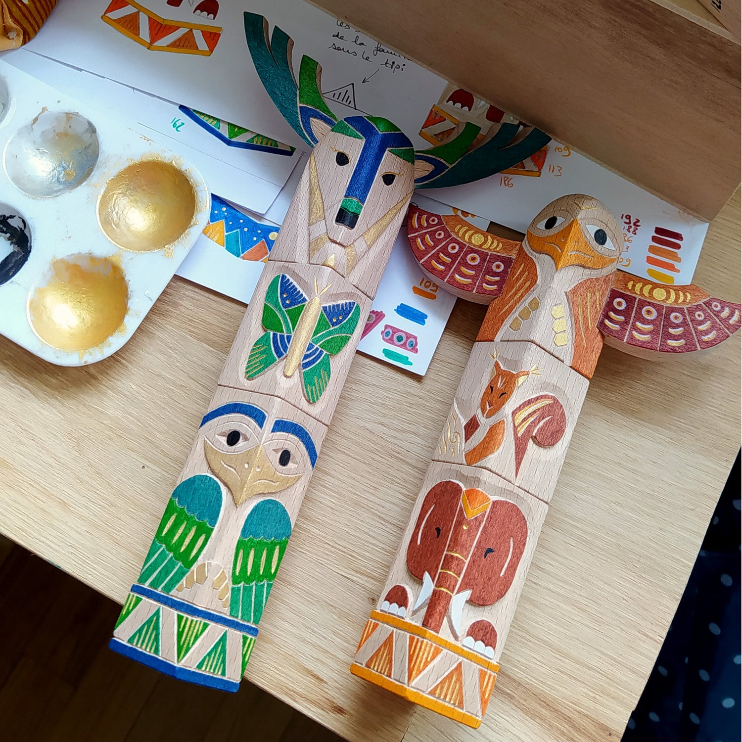 Les Totems sont des créations uniques, sculptées et peintes à la main.