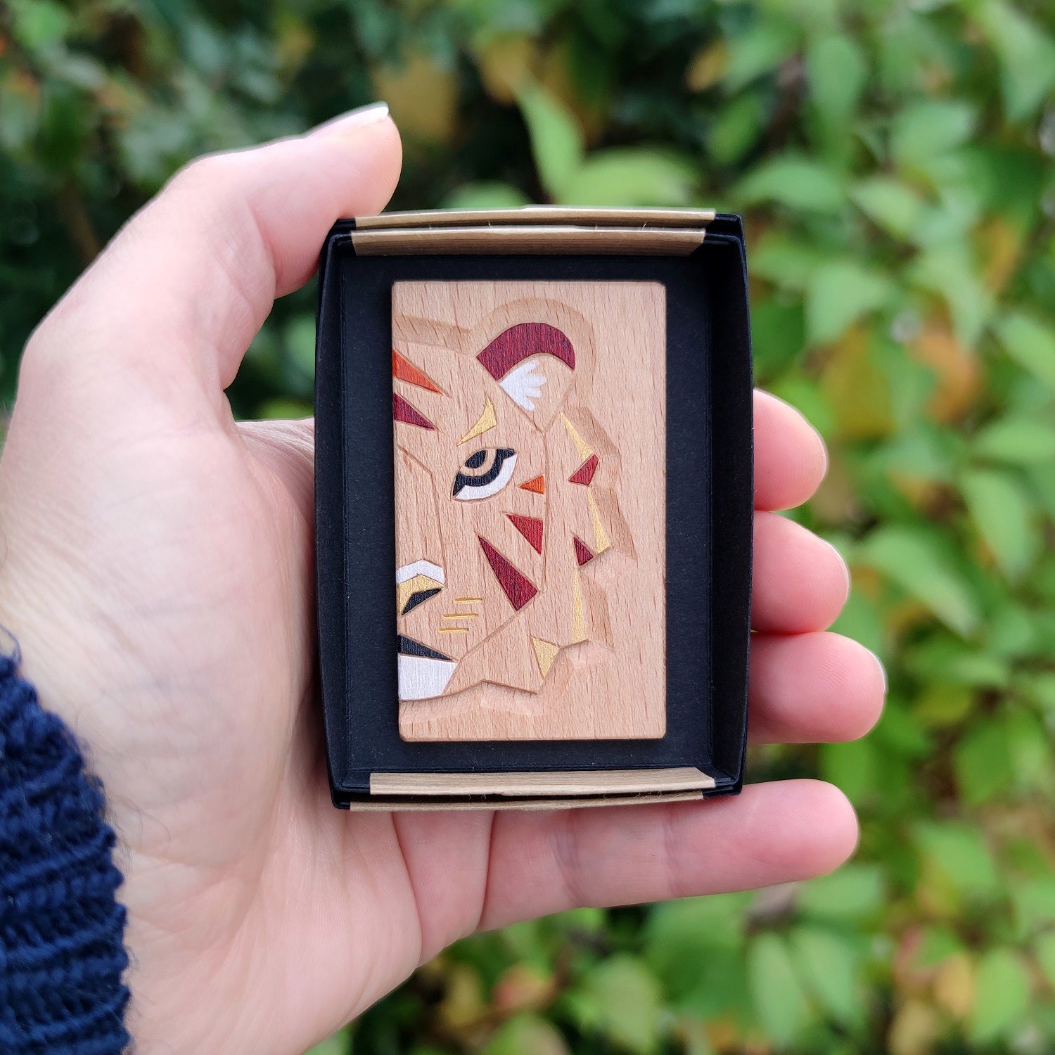 Le bois est un matériau qui évolue avec le temps. Sa teinte peut évoluer avec les années, surtout s'il est exposé à la lumière directe du soleil. Les teintes des encres et de la peinture dorée utilisées depuis mes débuts en 2019 n'ont pas bougé depuis.