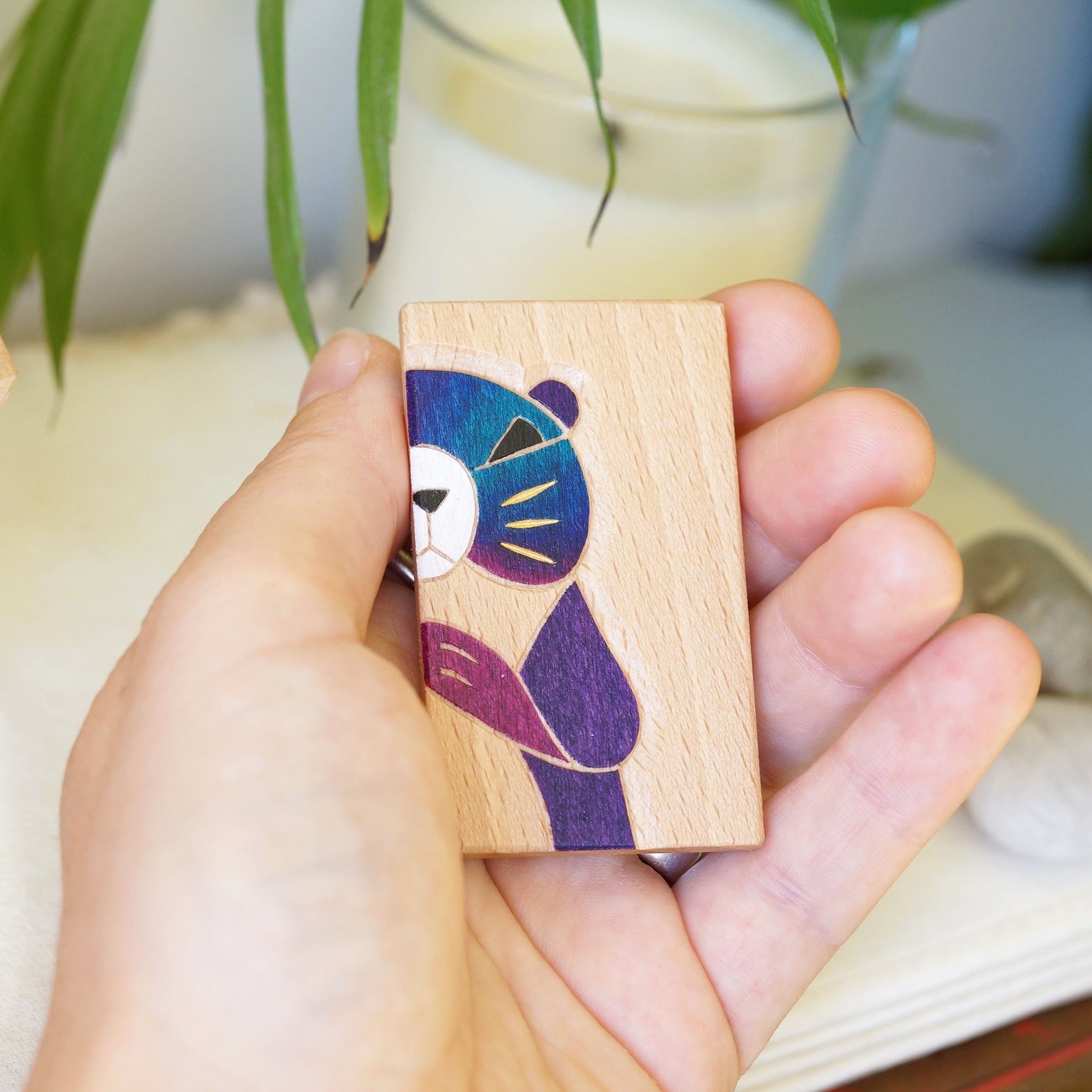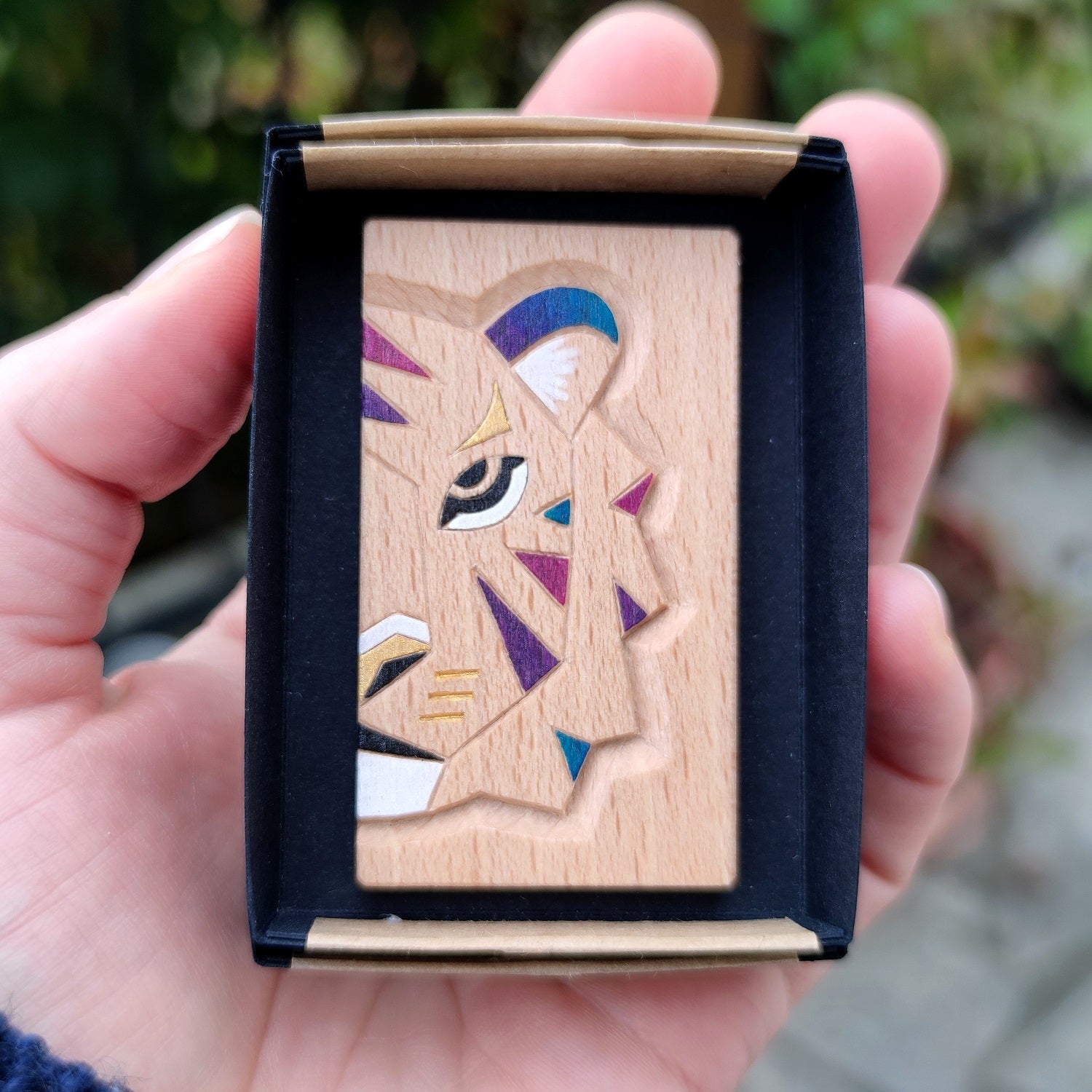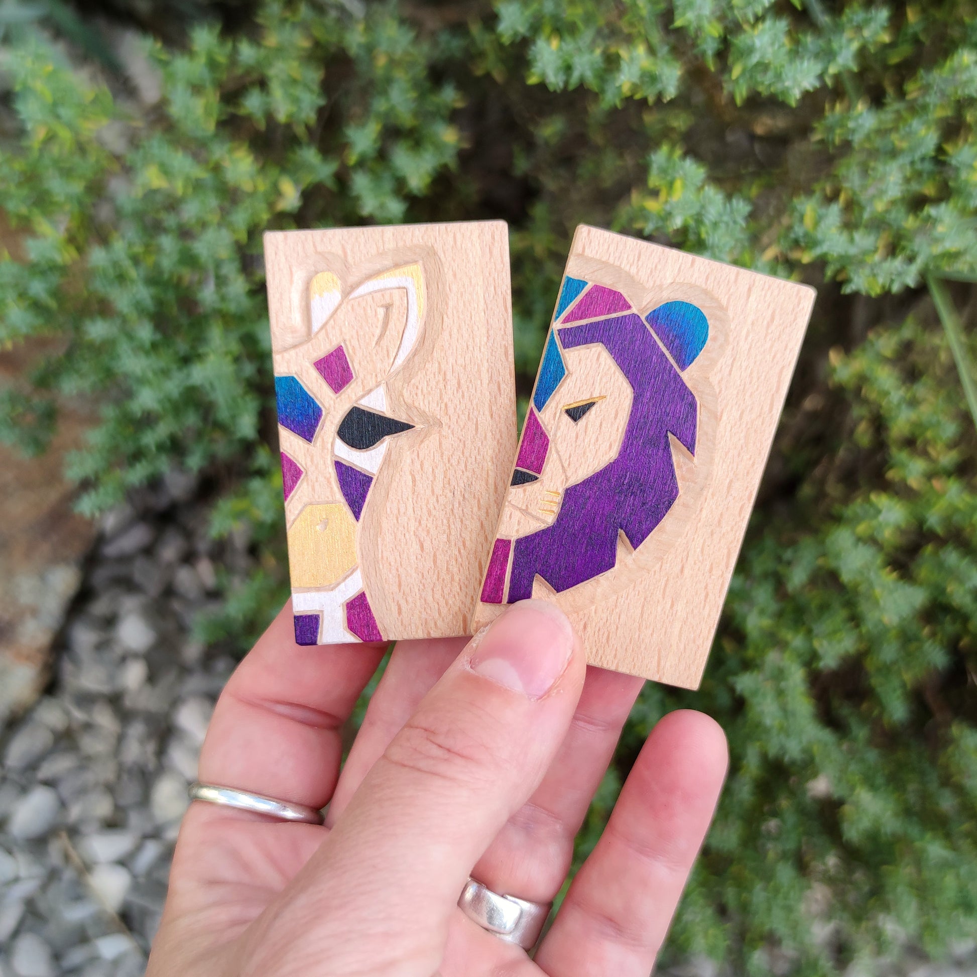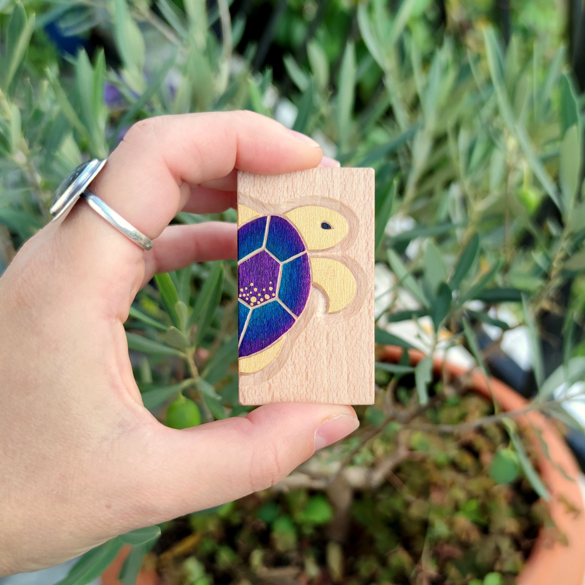 Le bois est un matériau qui évolue avec le temps. Sa teinte peut évoluer avec les années, surtout s'il est exposé à la lumière directe du soleil. Les teintes des encres et de la peinture dorée utilisées depuis mes débuts en 2019 n'ont pas bougé depuis.