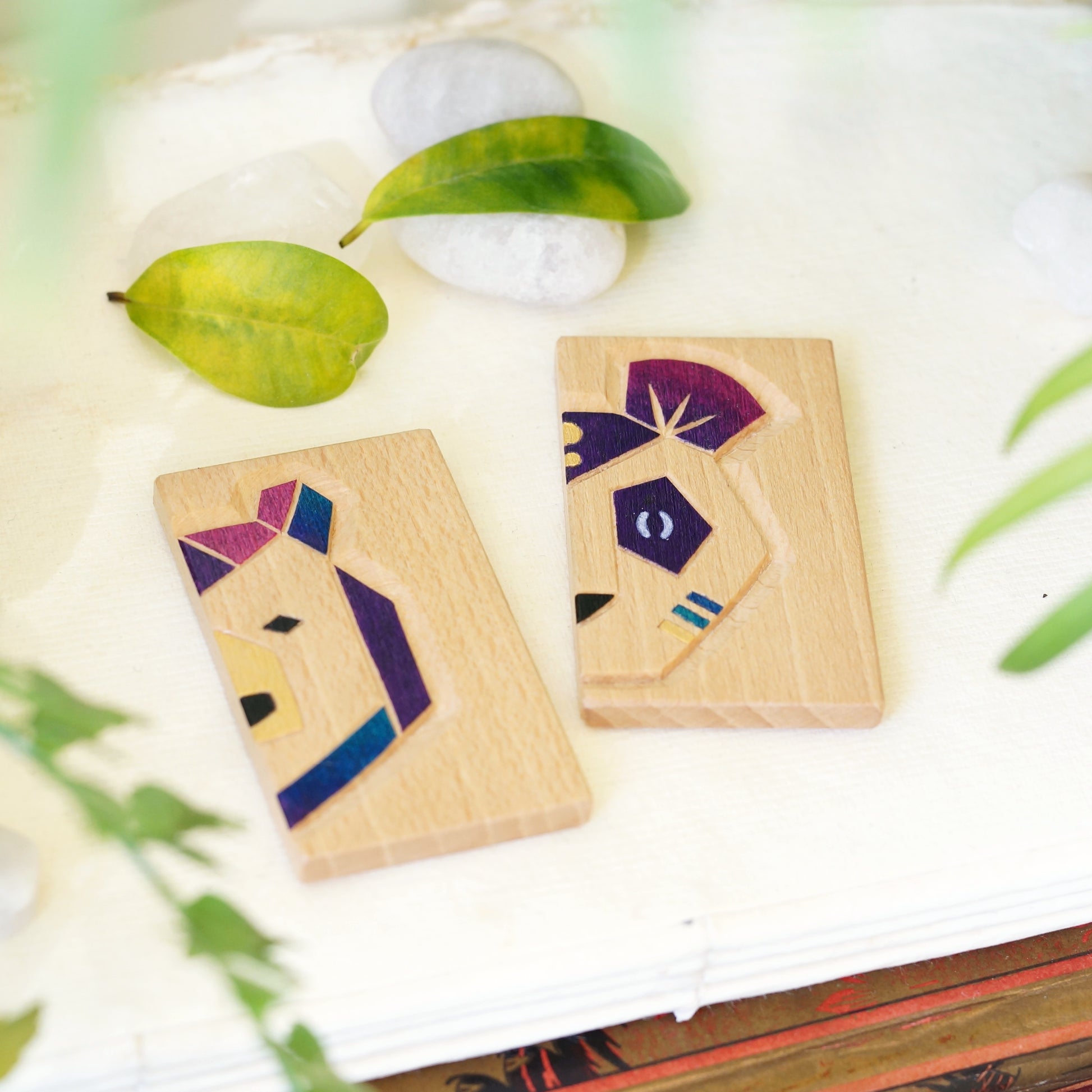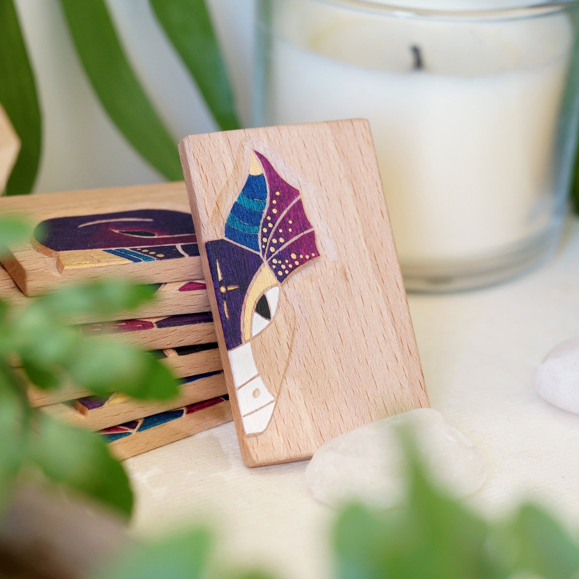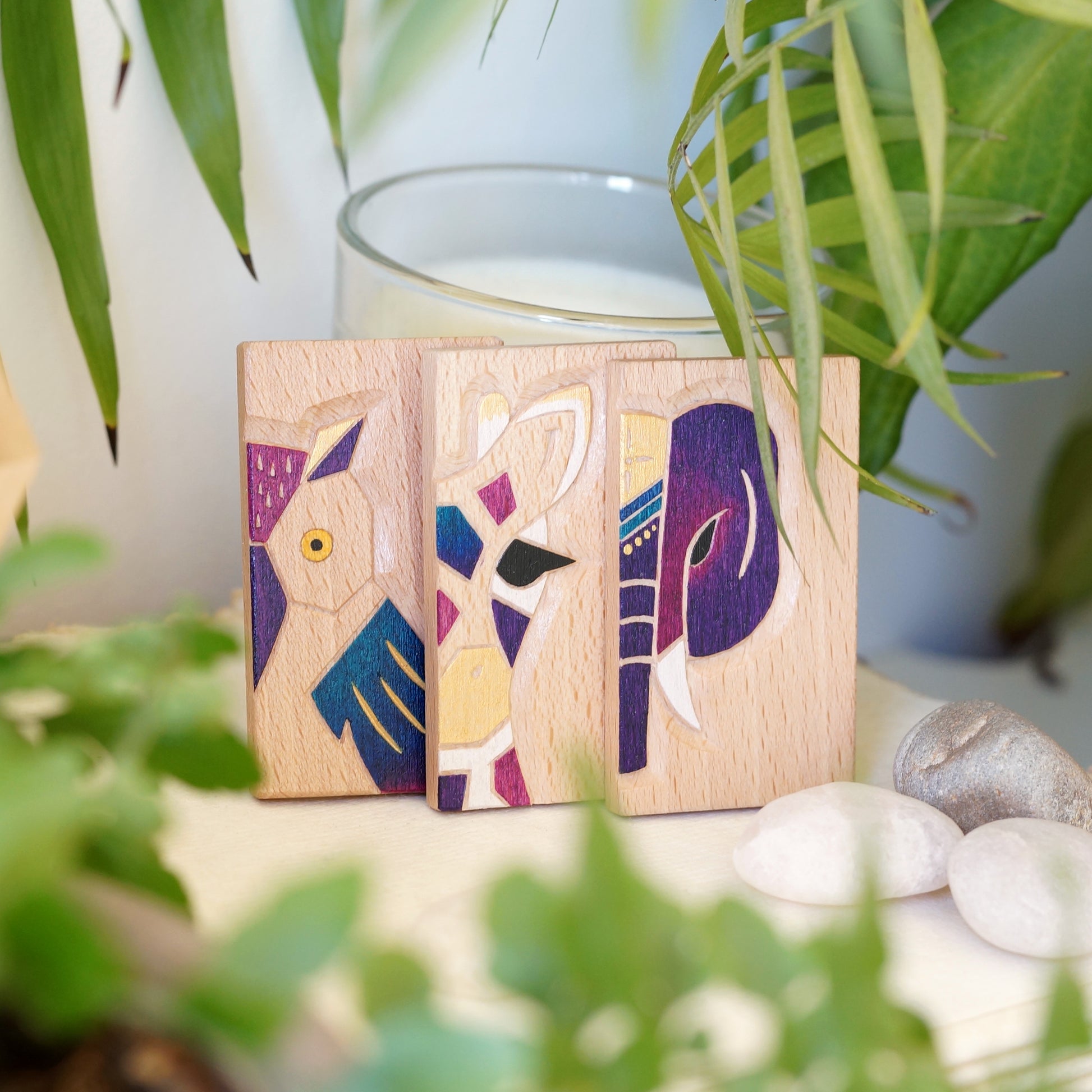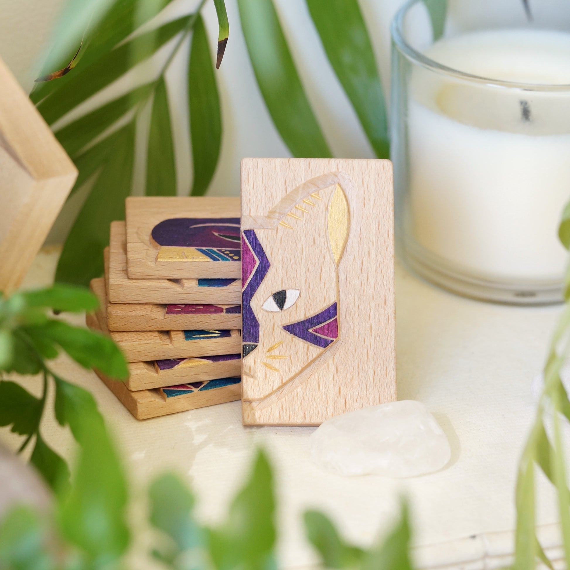 Le bois est un matériau qui évolue avec le temps. Sa teinte peut évoluer avec les années, surtout s'il est exposé à la lumière directe du soleil. Les teintes des encres et de la peinture dorée utilisées depuis mes débuts en 2019 n'ont pas bougé depuis.
